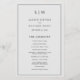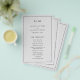 Folheto do Programa de Casamento de cinza simples, com um design moderno, mas elegante, com seu monograma de duas letras no topo e seus detalhes cercados por uma fina borda. As fontes e cores podem ser alteradas na ferramenta de edição de design. A frente tem sua ordem de cerimônia e a parte de trás tem sua festa de casamento e obrigado. Um design chic e na moda que é excelente para um casal minimalista. Estes programas de casamento baratos são impressos em folhas de papel para uma opção econômica.