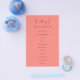 Programa Elegante de Casamento de Rosa de Coral de Texto. Um preço de valor PAPER (não cartão) tamanho de alternativo de 5,5" x 8,5" a um preço orçamentário. Um design típico para os seus programas de casamento. O cabeçalho principal está em um script na moda set e o resto do texto que você pode personalizar facilmente. Você pode alterar as cores do texto e do plano de fundo se quiser combinar o tema da cor do casamento através da opção Personalizar Mais, assim como de outras opções que você precisar. Se precisar de assistência para a edição deste design, por favor, envie-me uma mensagem.
