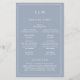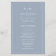 Folheto do Programa de Casamento com orçamento azul simples, com um design moderno, mas elegante, com seu monograma de duas letras no topo e seus detalhes cercados por uma fina borda. As fontes e cores podem ser alteradas na ferramenta de edição de design. A frente tem sua ordem de cerimônia e a parte de trás tem sua festa de casamento e obrigado. Um design chic e na moda que é excelente para um casal minimalista. Estes programas de casamento baratos são impressos em folhas de papel para uma opção econômica.