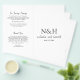 Programa moderno de casamento dobrado (impresso em papel fino e desdobrado) com um simples e mínimo design preto e branco com seu monograma em negrito junto com seus nomes em um roteiro elegante de escrita manual e sua data de casamento.