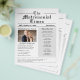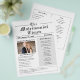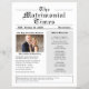 The Matrimonial Times, um divertido programa de casamento em estilo tablóide de jornal que é fácil de editar com os detalhes do seu casamento. Inclui uma lista de quem é quem, ordem do dia, cardápio, lista de pessoas perdidas e uma mensagem especial de agradecimento. Não se esqueça de mudar a foto para uma das suas