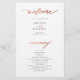 A moderna e simples tipografia minimalista tende a cerimônia branca limpa e o programa de núpcias do barato do ORÇAMENTO (tipo publicitário) PAPER FLYER modelo com um roteiro de chic trendy faux rosegold calliografia. +++++++++++ Fácil de personalizar com sua foto personalizada e texto em ambos os lados! +++++++++++++++++ LEIA ISSO ANTES DE COMPRAR! Este é um cartão de barato de orçamento impresso em um FLYER. ++++ Observe que o PAPEL ORÇAMENTAL É THIN - Você pode fazer upgrade para que este cartão seja impresso no estoque de cartão +++ ENVELOPES NÃO INCLUÍDO.