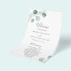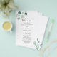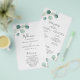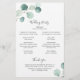 Panfleto de programa de casamento elegante e econômico com um design simples apresentando folhagens de eucalipto verde-salvia pintadas à aquarela no canto superior esquerdo e inferior direito. O lado frontal tem a ordem da sua cerimônia e o verso tem os membros da festa de casamento e uma mensagem de agradecimento. Esses programas de casamento botânicos rústicos com um toque moderno são perfeitos para um casamento de primavera ou verão. Esses programas de casamento acessíveis são impressos em folhas de papel para uma opção econômica.