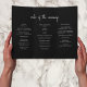 Este guião preto e branco triplicou o programa de casamento é uma forma na moda e funcional de guiar os seus hóspedes através da sua cerimônia. Apresentando uma elegante caligrafia manuscrita e um layout triplo limpo e contemporâneo, este programa oferece amplo espaço para incluir sua ordem de eventos, festa de casamento, leituras e notas pessoais. A paleta clássica de cores preto e branco adiciona charme de eterno, fazer ideal para casamentos formais, minimalistas ou românticos. Uma habilidade sofisticada que complementa maravilhosamente sua suíte de casamento.