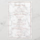 Um programa de casamento moderno e elegante com seus detalhes em um ouro falso rosa, cercado por uma fronteira, sobre uma cinza e fundo de mármore branco. Os cabeçalhos estão em uma letra de script elegante. Adicione os eventos da sua cerimônia à frente e à sua festa de casamento atrás. Este design e chic é excelente para uma celebração no inverno. Estes programas de casamento baratos são impressos em folhas de papel para uma opção econômica.