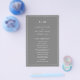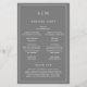 Folheto do Programa de Casamento com orçamento simples de cinza, com um design moderno, mas elegante, com seu monograma de duas letras no topo e seus detalhes cercados por uma fina fronteira. As fontes e cores podem ser alteradas na ferramenta de edição de design. A frente tem sua ordem de cerimônia e a parte de trás tem sua festa de casamento e obrigado. Um design chic e na moda que é excelente para um casal minimalista. Estes programas de casamento baratos são impressos em folhas de papel para uma opção econômica.