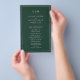 Simples orçamento verde florestal Folheto do Programa de Casamento com um design moderno, mas elegante, com seu monograma de duas letras no topo e seus detalhes cercados por uma fina fronteira. As fontes e cores podem ser alteradas na ferramenta de edição de design. A frente tem sua ordem de cerimônia e a parte de trás tem sua festa de casamento e obrigado. Um design chic e na moda que é excelente para um casal minimalista. Estes programas de casamento baratos são impressos em folhas de papel para uma opção econômica.