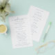 Folheto simples e empoeirado do programa de casamento, com um design limpo e minimalista, com um toque elegante com a palavra "bem-vindo" em roteiro com supressões. Um design moderno que se coordena lindamente com qualquer estilo de casamento. Estes programas de casamento baratos são impressos em folhas de papel para uma opção econômica.
