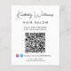 Folheto de promocional para sua empresa com seu nome em um script de assinatura de na moda e tipo de negócio abaixo em uma simples tipografia moderna. Insira seu endereço de site para criar um código QR para clientes e clientes pesquisarem compromissos, produtos, serviços, horas etc. Adicione seu identificador de instagrama e facebook para que os clientes o sigam nas mídias sociais. Se necessário, ajuste o tamanho da fonte editando na ferramenta design.