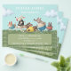 Um folheto de serviços de assistência a animais de estimação. Perfeito para um andador de cães, porteiro, babá ou creche de cão. A design consiste em uma ilustração de cinco cachorros engraçados correndo uma corrida por um campo com céu azul e nuvens. Personalize adicionando seus detalhes de contato.