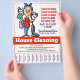 Que maneira brilhante, amigável e alegre de promover seu negócio de limpeza de casa! Possui uma mulher feliz com material de limpeza. Segure este folheto de rasgos na biblioteca local, pizzaria, deli, escritório de posto etc. Ele vai chamar atenção e preencher seu cronograma de limpeza rapidamente!