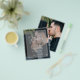 O roteiro de tendências faux vellum transparente foto simples minimalista preto e branco barato do BUDGET convite para casamento negro FLYER com um visual elegante de chic calliografia. +++++++ Fácil de personalizar com seus detalhes e sua foto em ambos os lados! ++++++++ Adequado para qualquer casamento moderno no estilo moderno de estação.++++++++ LEIA ISSO ANTES DE COMPRAR! Este é um cartão de casamento de barato orçamentário impresso em um FLYER. +++ Observe que o PAPEL ORÇAMENTAL É THIN - Você pode fazer upgrade para que este cartão seja impresso no estoque de cartão +++ ENVELOPES NÃO INCLUÍDO. +++ Verifique todas as informações e ortografia do seu texto porque você receberá exatamente o que você vê - ninguém mais verificará nada antes de imprimir. +++ Esta placa foi projetada para o tamanho de 4,5" x 5,6". Caso você escolha outro tamanho do cartão e o texto saia da página, tudo precisa ser corrigido antes de adicionar o produto ao carrinho. Peça ajuda ao Serviço de Design ao Vivo.