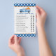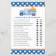 O chá de fraldas de carrinha azul da Pumpkin adivinha quem joga.