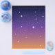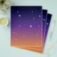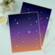 Este belo design mostra estrelas de todos os tamanhos num céu noturno brilhante brilhando com as cores que restam do pôr do sol. O fundo desaparece do muito escuro no topo para um roxo profundo no meio e, finalmente, um ouro de laranja no fundo. Este design de céu estrelado é excelente como está, mas você também pode adicionar seu próprio texto ou imagens para criar sua própria criação personalizada.