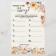 Flores Selvagens de outono Onde estavam? Jogo do chá de panela. Alterar texto para design. Para alterações adicionais (cor da fonte, estilo da fonte), clique em personalizar, role para baixo e clique no link "Editar usando a ferramenta Design". ** Consulte a coleção de cheios para ver o convite correspondente, jogos de chá de panela, etiquetas e sinais disponíveis* HOW TO PLAY: Exibe fotos da Noite e do Groom em diferentes locais e numera-as. Os convidados anotam o palpite de cada foto e a pessoa com as respostas mais corretas ganha!