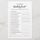 Torne seu chá de fraldas ainda mais memorável com o Pai que conhece? Jogo de Chá de fraldas de orçamento amigável! Este teste divertido e interativo é a maneira perfeita de testar os convidados sobre quão bem eles conhecem o pai a ser. Com uma mistura de perguntas leveduras e complicadas, este jogo trará risos e competição amigável para a celebração. Quer você esteja hospedando um chá de fraldas tradicional ou codificado, é uma maneira excelente de engajar amigos e familiares enquanto celebra a chegada do pequeno. Projetada com um estilo minimalista preto-e-branco elegante, essa atividade de chá de fraldas de barato se combina perfeitamente com qualquer tema. O formato imprimível de baixo custo permite personalizá-lo facilmente, fazer-o de uma manutenção exclusiva ou de uma adição divertida. Simplesmente impressão em casa ou um compro local, e você está pronto para ir! Perfeito para chás de fraldas de casais, este jogo envolve todos, fazer um sucesso com convidados de todas as idades. Personalizável e fácil de jogar, Quem Sabe o Pai? é um imperativo para qualquer chá de fraldas. Os convidados gostarão de adivinhar fatos divertidos sobre o pai a ser, criando memórias duradouras e muitas risadas. Quer você esteja procurando uma atividade simples e barato ou um jogo de trivialidades personalizado para corresponder ao seu tema de chá, este teste imprimível é a escolha perfeita. Prepare-se para ver quem realmente conhece melhor o Pai!
