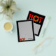 Quente com a letra O feita de um círculo de chama com pimentões picantes.