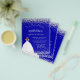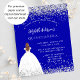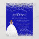 Por favor, note que este convite está no papel de folheto e é muito fino. Os envelopes não estão incluídos. Para convites mais espessos (mesmo design) visite nossa loja. Um convite moderno, na moda e glamouroso para uma Quinceañera, festa de aniversário 15. Um fundo azul real com poeira falsa, uma garota vestindo um vestido de bola. O nome é escrito com um moderno estilo escrito à mão. Personalize e adicione os detalhes da sua festa.