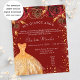 Por favor, note que este convite está no papel de folheto e é muito fino. Os envelopes não estão incluídos. Para convites mais espessos (mesmo design) visite nossa loja. Um convite moderno, na moda e glamouroso para uma Quinceañera, festa de aniversário 15. Um fundo vermelho com pó de ouro falso, um vestido e rosas vermelhas, florais. O nome é escrito com um moderno estilo escrito à mão. Personalize e adicione os detalhes da sua festa.