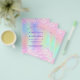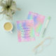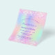 Por favor, note que este convite está no papel de folheto e é muito fino. Os envelopes não estão incluídos. Para convites mais espessos (mesmo design) visite nossa loja. Uma Quinceañera feminina e feminina, convite de aniversário 15. Na frente: Um arco-íris, fundo holográfico colorido em roxo, rosa, verde-menta, ouro-rosa. Decorado com brilho pinto-claro, brilhos. Personalize e adicione um nome e detalhes da parte. O nome é escrito com um script de estilo manuscrito, letras cor roxa.