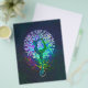 Trabalho de arte com uma senhora fazendo uma postura de yoga em cima de um yin yang.
