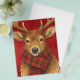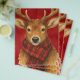 Nesta obra de arte, uma encantadora rena de Natal toma o centro do palco, adornada com um cachecol xadrez aconchegante que adiciona um toque de charme festivo. Os olhos quentes e gentis da rena contrastam lindamente com o fundo de guache vermelho intenso, que é meticulosamente misturado usando tons variados de vermelho para criar um efeito rico e em camadas. Essa profundidade sutil no fundo aumenta a sensação geral de calor da peça, evocando um sentimento de alegria natalina e convidando os espectadores a entrar em um caprichoso mundo de inverno encantado.