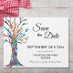 Observe que esta opção Salvar a data está no papel do folheto e muito fina. Os envelopes não estão incluídos. Para Cartões salve a data mais espessos (mesmo design) visite nossa loja. Avise a sua família sobre a data da Reunião Familiar com este na moda para salvar o folheto de data. Ele apresenta uma árvore genealógica em cores do arco-íris e espaço para você personalizar com seu nome de família e detalhes. Mosaico original © Michele Davies.