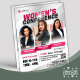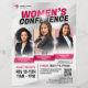 Modelo de Folheto da Igreja das Mulheres - Elegante, Empoderador e Moderno. Faça uma forte impressão com este modelo de voador profissionalmente projetado para a sua próxima Conferência da Igreja das Mulheres. Com um fundo de dois tons com uma base de cinza macia e realces brancos nítidos, o layout é elevado por linhas limpas que criam estrutura e fluxo visual. Os textos preto e rosa macio em negros oferecem um contraste impressionante — oferecendo um visual moderno e feminino que é convidativo e apropriado para o ministério. O folheto inclui espaço para três auto-falantes ou pastores em destaque, com fotos colocadas em quadros cortados diagonalmente realçados por sotaque quente e sotaque cor-de-rosa. Estes toques suaves e na moda adicionam uma sensação refinada, mas enérgica, perfeitamente adequada aos eventos ministeriais femininos. Cada seção é cuidadosamente projetada para facilitar a personalização, com áreas editáveis para o título do evento, nomes de auto-falante, data, hora, local e um espaço reservado para um código QR — ideal para vincular ao registro, ingressos ou ao site da sua igreja. Criado em alta resolução para a impressão, este folheto é perfeito para conferências femininas, recuos, cimeiras e outras reuniões baseadas na fé. Gracioso e ousado, este panfleto é o instrumento perfeito para promover o próximo evento de mulheres que se reveste de grande impacto. NOTA: "Conferência das Mulheres" é um elemento de texto fixo e não pode ser modificado.