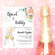 Por favor, note que este convite está no papel de folheto e é muito fino. Os envelopes não estão incluídos. Para convites mais espessos (mesmo design) visite nossa loja. Um convite moderno, na moda e glamouroso para um Chá de panela de bolinho. Um fundo branco com bolhas, um par de flautas, óculos, uma flor de ouro rosa e um verde de eucalipto. O nome é escrito com um moderno estilo escrito à mão. Personalize e adicione os detalhes da sua festa.