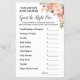 Adivinha o preço certo. Adicione a mãe para ser o nome e mude os itens para o modelo conforme necessário. Para alterações adicionais (alterar outro texto, cor da fonte, estilo da fonte ), clique em personalizar, role para baixo e clique no link "Editar usando a ferramenta de Design". ** Verifique a coleção de todos os designs** COMO REPRODUZIR: os convidados preenchem suas suposições do custo de cada item. Compre todos os itens para que os convidados tenham uma visão de cada item, e você também terá um recibo com respostas corretas no final, é um presente perfeito para a futura mãe!