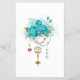 Chave de ouro antiga com rosas de turquesa de tendência, decoradas com folhas de ouro branco e miçangas cor-de-rosa e azuis. Cor agradável. Rosas de turquesa. Ouro branco. Tifania azul.