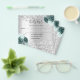 Por favor, note que este RSVP está no papel do folheto e é muito fino. Os envelopes não estão incluídos. Para placas RSVP mais espessas (mesmo design) visite nossa loja. Um fundo metálico prateado falso, decorado com cintilação cintilante e flores verdes. Personalize e adicione a resposta por data e seus nomes.