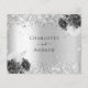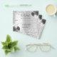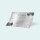 Por favor, note que este RSVP está no papel do folheto e é muito fino. Os envelopes não estão incluídos. Para placas RSVP mais espessas (mesmo design) visite nossa loja. Um fundo metálico cinzento e prateado, decorado com brilho cintilante e flores. Personalize e adicione a resposta por data e seus nomes.