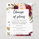 ** O MATTE PAPER É FINO. ATUALIZE UM PAPEL MAIS ESPESSURDO. SEM ENVELOPES INCLUÍDOS.*** ** Sem envelopes, versão do folheto. Economize dinheiro em anúncios com este convite. Mude os planos para o seu casamento com este folheto de Borgonha Marsala e White Change of Plan. Versão pequena, em papel. Quer este design em um papel mais espesso ou maior? Confira nossa coleção de Alterações de Planos: https://www.zazzle.com/collections/change_cancel_delay_wedding_announcements-119305647416996151?rf=238937196885903396