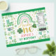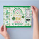 [TODO o texto é EDITÁVEL, exceto o primeiro da sorte] Tema: Dia de São Patrício Arco-Íris Shamrock. Ocasiões: Festa de primeiro aniversario. Estilo: Bonito, Elegante, Boho. Cores: Verde, Rosa, Dourado, Branco. Gráficos: Arco-Íris, Aquarela, Falso Dourado.
