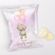 Embrulhos de saco de batata frita para chá de bebê de ursinha menina com ursinho e balões em um fundo de nuvem rosa. Você pode personalizar este embrulho de saco de batata frita para chá de bebê de ursinha menina simplesmente adicionando seus detalhes na frente. Para montar, envolva o folheto em torno do seu saco de batata frita ou lanche tamanho e prenda com fita adesiva dupla face ou comum. Cabe 1 onça de saco de batata frita ou lanche - OU - você pode deixar a parte superior aberta, inserir um saco plástico e adicionar sua própria mistura de lanche a granel e fechar a parte superior.