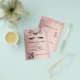 Um fundo gradiente rosa dourado, com brilhos, tesoura preta e cílios. Na frente: O texto: Lista de preços. Personalize e adicione seu nome e endereço. Crie seu próprio código QR adicionando a url do seu site ou conta de mídia social.