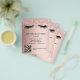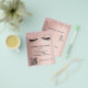 Um fundo gradiente dourado rosa, com brilhos e cílios. Frente: O texto: Lista de preços. Personalize e adicione seu nome e endereço. Crie seu próprio código QR adicionando o url do seu site ou da sua conta de mídia social.