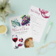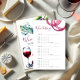 Este charmoso scorecard de classificação de provando de vinho ilustra as uvas para aquarelas, o vinho tinto, o queijo e o conselho de corte. Use o dorso para marcar seu vinho de 1 a 5. Uma ideia divertida para chá de panela, festa de solteira e ensaiar ideias de janto. Para ver o tema do casamento de Victoria Grigaliunas do Do Tell A Belle, visite www.zazzle.com/dotellabelle