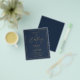 Marinho de orçamento Blue e Dourado Faux Foil Wedding Primavera ou Summer Wedding Invances - inclui uma bela e elegante tipografia de roteiro com uma cor simples e clássica moderna para a celebração especial do dia de casamento.