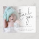Um alternativo de valor do excelente em um tamanho SMALLER de 4,5" x 5,6" sem envelopes - envelopes A6 padrão são o tamanho mais próximo ao ajustado. Foto do roteiro do PAPER Obrigado Anúncio de Nascimento Envie a notícia alegre do seu novo bebê e diga obrigado ao mesmo tempo com este minimalista design de fotos, com um belo roteiro para Obrigado e o resto do texto em ambos os lados é fácil de personalizar. Substitua a foto da amostra pela sua. Uma camada de camada de gradiente está sobre a sua foto, de modo que ela desaparece à medida que ela chega ao centro com o texto parcialmente sobreposto no topo. Você pode alterar a cor do plano de fundo no verso por meio da personalização para outra cor, se melhor se adequar à sua imagem.