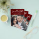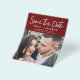 Orçamento Foto em Quadrado de Script Manuscrito Moderno e Elegante Salve o Cartão de Casamento de Data. O cartão de convite para salvar a data inclui uma tipografia de chic e na moda com um design simples e minimalista em um fundo Burgundy ao qual você pode adicionar sua fotografia personalizada de noivado.