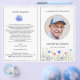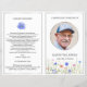 Com um prado azul de flor silvestre, esta aquarela aprecia um programa de funeral dobrável. Projetado para ser impresso em ambos os lados e fornecido plano para você dobrar, a frente mostra o nome do falecido e você pode inserir uma fotografia favorita no quadro circular de efeito prateado enquanto o dentro pode ser editado com a ordem de serviço ou o que você quiser. Num momento difícil, esta design com fronteiras de prata é adequada para uma celebração do serviço de vida, um serviço religioso de memória religiosa ou uma cerimônia humanista. NB: O efeito da folha de prata FAUX é impresso e NÃO é metálico - dobrar em casa.