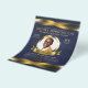O Folheto de Apreciação do Pastor Azul e Dourado Elegante Apresenta Banner Dourado e Inserção de Foto. Personalize Para O Seu Gosto.
