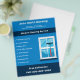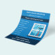Um panfleto azul para serviços profissionais de limpeza de janelas. Ele vem com o número de telefone, informações de contato do cheio e lista de serviços! À direita, há uma ilustração de uma janela com um vidro limpo e uma espreita.