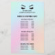 Lista de preços de Extensão de Cílios é uma forma perfeita de mostrar seus serviços e preços. Inclui quatro títulos personalizáveis e campos de texto do corpo, e espaço para as informações de contato da sua empresa ao longo da parte inferior. Para ajustar o layout, insira o seu texto e use a função Personalizar para alterar a posição e tamanhos de fonte. São perfeitos para o seu negócio de Extensão de Cílios.