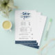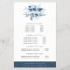 O design de cartão de folheto botânico chic exibe seus serviços, sua lista de preços ou informações comerciais de forma elegante. Design apresenta um logotipo de folhagem de cor d'água em marinho e azul-céu, moldando seu nome e/ou nome comercial em um fundo branco nítido com trim azul do porto. Inclui quatro títulos personalizáveis e campos de texto do corpo, e espaço para as informações de contato da sua empresa na parte inferior. Para ajustar o layout, digite seu texto e use a função Personalizar para alterar o posicionamento e os tamanhos de fonte.