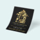 Folheto de ouro e negócios negros modernos, projetado para serviços comerciais ou residenciais de limpeza, empregada doméstica, empregada doméstica ou faxineira. Design com ícone de casa de ouro e ícones de equipamento de limpeza dentro. Personalize a frente com duas linhas de texto personalizado em um plano de fundo preto e uma descrição de serviços, e adicione os detalhes de contato do cheio aos detalhes da mídia social e traseira. Tendy Chic design moderno.