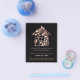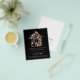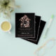 Rosa ouro moderno e folheto de negócios preto concebidos para serviços comerciais ou residenciais de limpeza, empregada doméstica, serviços de empregada doméstica ou faxina. Design com ícones de rosa dourado e ícones de equipamento de limpeza dentro. Personalize a frente com duas linhas de texto personalizado em um plano de fundo preto e uma descrição de serviços, e adicione os detalhes de contato do cheio aos detalhes da mídia social e traseira. Tendy Chic design moderno.
