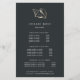 O design de folheto elegante para salões de cabelo ou estilistas mostra seus serviços ou sua lista de preços em letras brancas clássicas em um fundo preto macio adornado com uma ilustração falsa de concha de ouro para um visual chic tropical. Inclui três títulos personalizáveis e campos de texto do corpo e espaço para as informações de contato do salão na parte inferior. Para ajustar o layout, digite seu texto e use a função Personalizar para alterar o posicionamento e os tamanhos de fonte.